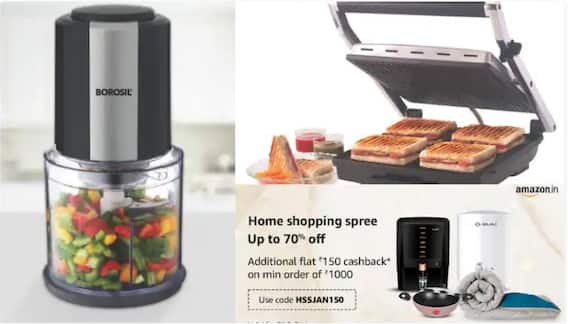 Amazon Offer On Kitchen Appliance: অ্যামাজনে পাবনে কিচেন অ্যাপ্লায়েন্সে এক্সক্লুসিভ ডিল। আপনি এই সেলে যদি হাজার টাকার কেনাকাটা করেন, তবে সাধারণ ডিসকাউন্ট ছাড়াও আপনি আরও ১৫০ টাকা ছাড় পাবেন। এর জন্য কেবল আপনাকে HSSJAN150 প্রোমো কোড লিখতে হবে। এই অফারটি কেবল ৮ ও ৯ জানুয়ারি পর্যন্ত প্রযোজ্য। জেনে নিন সেরা ব্র্যান্ড বোরোসিল ভেজিটেবল চপার ও স্যান্ডউইচ মেকারে সেরা ডিল।