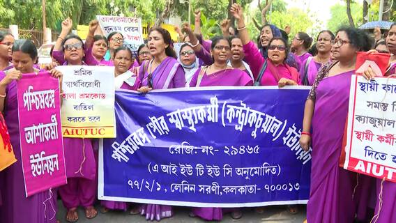 ফিরে দেখা...এর আগেও একাধিক দাবি আদায়ের জন্য পথে নেমেছিলেন আশাকর্মীরা। গত ফেব্রুয়ারি মাসেই স্বাস্থ্য ভবনের সামনে তুলকালাম বেঁধে যায়। আগুন জ্বালিয়ে বিক্ষোভ। পুলিশের সঙ্গে ধস্তাধস্তি। স্বাস্থ্য ভবনের সামনে বসে পড়েন আশা কর্মীরা। নিয়োগের দাবিতে লাগাতার আন্দোলন চালাচ্ছিলেন চাকরিপ্রার্থীরা। সরকারি কর্মচারীদের বকেয়া ডিএর দাবিতে রাজপথে আন্দোলন চলছে। এর মধ্যেই সরকারি স্বাস্থ্য কর্মীর স্বীকৃতি-সহ ১২ দফা দাবিতে পথে নেমেছিলেন আশা কর্মীরা। পশ্চিমবঙ্গ আশা কর্মী ইউনিয়নের ডাকেই সে দিন স্বাস্থ্য ভবন অভিযানের ডাক দেওয়া হয়েছিল। আশাকর্মীদের সরকারি স্বাস্থ্য কর্মীর স্বীকৃতি দিয়ে স্থায়ী বেতন চালু, ভাতা বৃদ্ধি, বকেয়া সমস্ত প্রাপ্য মেটানো, করোনার ভাতা ১৫ হাজার টাকা, করোনা আক্রান্তদের বিমার ঘোষিত ১ লক্ষ টাকা দেওয়ার দাবি-সহ বিভিন্ন দাবিতে সেদিন সকালে, প্রথমে সল্টলেক স্বাস্থ্যভবনের সামনে জমায়েত করেন স্বাস্থ্যকর্মীরা। আগে থেকেই মোতায়েন ছিল বিশাল পুলিশ বাহিনী। আশাকর্মীরা বিক্ষোভ দেখাতে শুরু করলে পুলিশের সঙ্গে ধস্তাধস্তি বেধে যায়। ধাক্কাধাক্কিতে অসুস্থ হয়ে পড়েন এক আশা কর্মী। শেষমেশ ১২ জনের একটি প্রতিনিধি দল স্বাস্থ্যভবনে গিয়ে ডেপুটেশন দেন। তার আগে, ডিসেম্বরে, প্রধানমন্ত্রী আবাস যোজনা সমীক্ষার কাজ না করার দাবিতে প্রতিবাদে সামিল অঙ্গনওয়াড়ি ও আশা কর্মীরা। ওয়েলিংটন থেকে ধর্মতলা পর্যন্ত মিছিল তাঁদের। সঙ্গে সংযোজন, অঙ্গনওয়াড়ি কর্মীর মৃত্যুতে ৫০ লক্ষ টাকা আর্থিক সাহায্য করতে হবে। বিক্ষোভকারীদের বক্তব্য় স্পষ্ট। দফতর-বহির্ভূত ভাবে তাঁদের উপর প্রধানমন্ত্রী আবাস যোজনা সমীক্ষার কাজ চাপিয়ে দেওয়া হয়েছে যা তাঁরা কিছুতেই করবেন না। মোট ১৩ দফা দাবি রয়েছে অঙ্গনওয়াড়ি ও আশা কর্মীদের। পাশাপাশি, মৃত অঙ্গনওয়াড়ি কর্মী রেবা রায় বিশ্বাসের পরিবারকে ৫০ লক্ষ টাকা ক্ষতিপূরণ দেওয়ার দাবিতেও পথে নেমেছেন তাঁরা। সরকারি-স্বীকৃতিও চাইছেন অঙ্গনওয়াড়ি ও আশা কর্মীরা তাঁদের একজনের কথায়, 'আমরা অত্যন্ত আতঙ্কিত হয়ে রয়েছি। যে অর্ডার বেরিয়ে গিয়েছে তা প্রত্যাহার করে নেওয়া হলেও জের চলতে থাকবে। রেবা রায় বিশ্বাসের মতো অনেকেরই প্রাণনাশের ভয় রয়েছে।'এবার ফের আন্দোলনে আশাকর্মীরা।