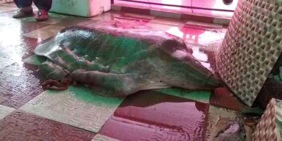 পা বাঁধা অবস্থায় উদ্ধার বিশালাকার কচ্ছপ