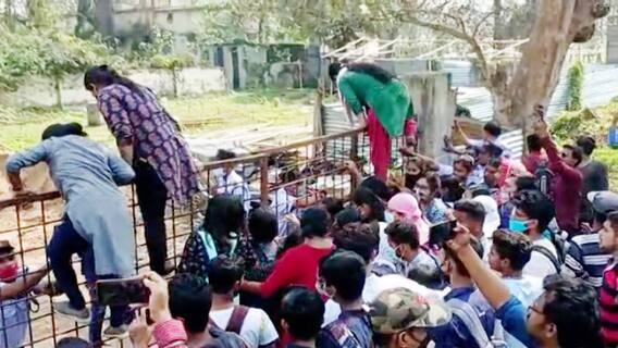 এর পর পাঠভবনে ওই সময় যে সমস্ত ক্লাস চলছিল, তা বন্ধ করে দেন বিক্ষোভকারী পড়ুয়ারা। তালা ঝুলিয়ে দেওয়া হয় বিশ্বভারতীর একাধিক দফতরে (Birbhum News)। সেখান থেকে মিছিল করে তার পর সঙ্গীত ভবনে এসে পৌঁছন পড়ুয়ারা। সেখানেও ফটক টপকেই ভিতরে ঢোকেন তাঁরা। সেই সময় সঙ্গীত ভবনে যাঁরা ক্লাস করছিলেন, তাঁদের বার করে দেওয়া হয়।