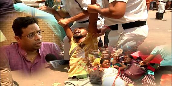 SSC’র আন্দোলনকারীদের সঙ্গে অভিষেকের বৈঠকের পরের দিন টেনে হিঁচড়ে তুলে দেওয়া হল টেট উত্তীর্ণদের। যা নিয়ে একযোগে আক্রমণ বিরোধীদের। বিজেপির রাজ্য সভাপতি সুকান্ত মজুমদার বলেছেন, 'পুলিশ দিয়ে সরকার চলছে। হকের লড়াই করছে চাকরি প্রার্থীরা। তাদের সঙ্গে এই আচরণ ঠিক নয়।' প্রদেশ কংগ্রেস সভাপতি অধীর রঞ্জন চৌধুরীর কথায়, 'এর আগেও তো মুখ্যমন্ত্রীও বৈঠকে বসেছিলেন। মুখ্যমন্ত্রী যেটা পারলেন না, সেটা অভিষেক করে দেখাবেন। চাকরিপ্রার্থীদের ওপর লাঠি চালাল, ভাবা যায় না। লোক দেখানো মিটিং করছে আবার লাঠিও চালাচ্ছে।'