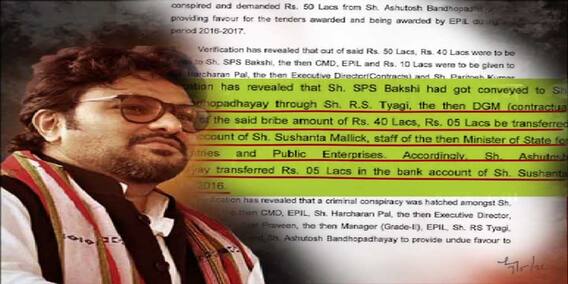 ২০১৬-র ডিসেম্বরে আশুতোষ বন্দ্যোপাধ্যায়, সুশান্ত মল্লিকের ব্যাঙ্ক অ্যাকাউন্টে ৫ লক্ষ টাকা পাঠিয়েছিলেন। CBI’এর FIR’এ দুর্নীতির যে সময়ের কথা উল্লেখ করা হয়েছে, সেই সময় অর্থাৎ ২০১৬ সালে বাবুল সুপ্রিয় ছিলেন কেন্দ্রীয় ভারী শিল্পপ্রতিমন্ত্রী।তার ২ বছর আগে প্রথমবার আসানসোলের বিজেপি সাংসদ নির্বাচিত হন তিনি। যে সংস্থায় টেন্ডার পাইয়ে দেওয়ার নামে ঘুষ নেওয়ার অভিযোগ উঠেছে, তার নাম ইঞ্জিনিয়ারিং প্রজেক্টস ইন্ডিয়া লিমিটেড বা EPIL। সংস্থার ওয়েবসাইট বলছে, ১৯৭০ সালে এই সংস্থাকে ভারী শিল্পমন্ত্রকের অধীনে আনা হয়। সিবিআই সূত্রের খবর, কয়েকমাস আগেই, ইঞ্জিনিয়ারিং প্রজেক্টস ইন্ডিয়া লিমিটেডে ঘুষ নিয়ে টেন্ডার পাইয়ে দেওয়ার অভিযোগ সামনে আসে।