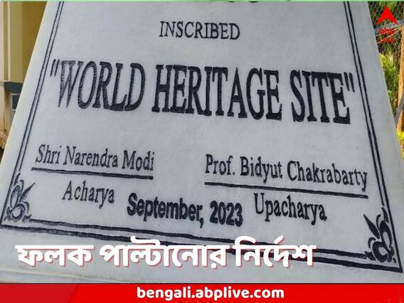 কেন্দ্রীয় শিক্ষামন্ত্রকের তরফে চিঠি দিয়ে বিশ্বভারতী কর্তৃপক্ষকে এই নির্দেশ দেওয়া হয়েছে। বলা হয়েছে, বর্তমানে যে ফলক আছে তা পাল্টাতে হবে। তার পরিবর্তে বসাতে হবে নতুন ফলক, যাতে আচার্য তথা প্রধানমন্ত্রীর নাম থাকবে না। থাকবে না উপাচার্যের নামও। নতুন ফলকে কী লেখা হবে, তা ঠিক করতে কর্তৃপক্ষকে কমিটি গড়ার নির্দেশও দিয়েছে কেন্দ্রীয় শিক্ষামন্ত্রক। তবে ফলকে তিনটি প্রতীকচিহ্ন রাখতে হবে, প্রথমটি UNESCO-র, দ্বিতীয়টি দেশের জাতীয় প্রতীক এবং তৃতীয়টি বিশ্বভারতীর। শিক্ষামন্ত্রকের চিঠি পাওয়ার পরেই চার জন অধ্যাপককে নিয়ে কমিটি গড়েছে বিশ্বভারতী। (Visva Bharati University)