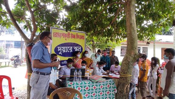স্কুলের প্রধান শিক্ষক কৌশিক সরকার বলেন, "বর্তমান পরিস্থিতিতে ছাত্র-ছাত্রীদের সঙ্গে যোগাযোগ করা যাচ্ছে না। তাদের ফোনেও পাওয়া যাচ্ছে না। কিন্তু বিভিন্ন প্রকল্পগুলির সুবিধা যাতে তারা পায়, তার জন্য দুয়ারে স্কুল প্রকল্প শুরু করেছি। এতে গ্রামে গ্রামে গিয়ে সরাসরি ছাত্রছাত্রীদের কাছ থেকে তথ্য সংগ্রহ করা হচ্ছে এবং অনলাইনে আবেদন করানো হচ্ছে।"