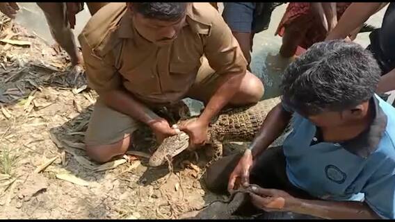 গৌতম মণ্ডল, দক্ষিণ ২৪ পরগনা: পুকুরে (Pond) ঢুকে পড়ল কুমির (crocodile)। দক্ষিণ ২৪ পরগনার (South 24 Parganas) পাথরপ্রতিমার দিগম্বরপুরের ঘটনায় ত্রাসের মেজাজ স্থানীয়দের মধ্যে। পরে বনকর্মীরা কুমিরটিকে জালবন্দি করে।