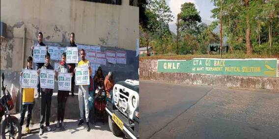 জিএনএলএফ কর্মী সমর্থকরা হাতে পোস্টার নিয়ে যেমন বিক্ষোভ দেখাচ্ছেন, তেমনই দোকান-বাজার থেকে শুরু করে পাহাড়ের গায়ে পর্যন্ত জিটিএ-বিরোধী পোস্টার সেঁটে দিচ্ছেন তাঁরা। পাহাড়ি রাস্তার ধারে লিখে দেওয়া হয়েছে, ‘জিটিএ গো ব্যাক। চাই স্থায়ী রাজনৈতিক সমাধান।’