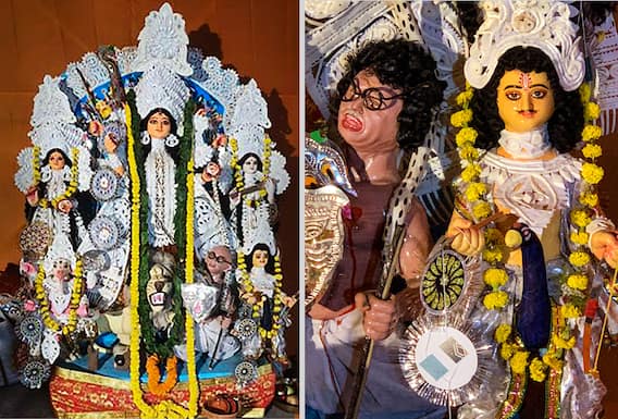 কলকাতার রুবির মোড়ের কাছে কসবায় হিন্দু মহাসভার তরফে এই বছরেই প্রথমবার দুর্গাপুজোর আয়োজন করা হয়েছে। সেখানেই দেখা যায় দেবী দুর্গার পায়ের তলায় থাকা অসুরের চেহারা যেন মহাত্মা গাঁধীর মতো। ওই পুজোর অসুরের মূর্তিতে ছিল মাথাজোড়া টাক। চোখে রয়েছে গোলাকৃতি চশমা। অসুরের হাতে রয়েছে লাঠি। আর সেই অসুরের বুকে ত্রিশূল বিঁধিয়েছেন দেবী দুর্গা। এমন ঘটনা সামনে আসতেই শুরু হয় প্রবল চাপানউতোর।