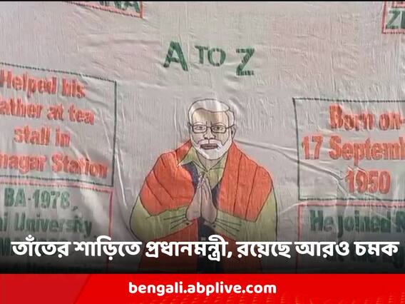 রানা দাস, কাটোয়া: তাঁতের শাড়িতে (Handloom Saree) এবার প্রধানমন্ত্রীর (Narendra Modi) ছবি ফুটিয়ে তুললেন কাটোয়ার (Katwa) জগদানন্দপুরের তাঁতশিল্পী জগবন্ধু দালাল। কয়েক মাস আগে তাঁতশিল্পী জগবন্ধু একটি তাঁতের শাড়িতে রাজ্যের মুখ্যমন্ত্রীর চিত্র ফুটিয়ে তুলেছিলেন। আর এবার তাঁর সাবজেক্ট প্রধানমন্ত্রী নরেন্দ্র মোদি (Narendra Modi)। প্রধানমন্ত্রীর ছবিসহ শাড়িটি নরেন্দ্র মোদিকে ( PM Narendra Modi) উপহার দেওয়ার স্বপ্নও দেখছেন জগবন্ধু।