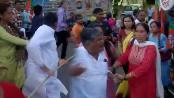 সৌরভ বন্দ্যোপাধ্যায়, চুঁচুড়া : চুঁচুড়ার (Chunchura) খাদিনামোড়ে বিজেপির মিছিলে (BJP Rally) হামলা তৃণমূলের। লাঠি হাতে বিজেপি কর্মীদের পেটাতে দেখা গেল তৃণমূল বিধায়ক অসিত মজুমদারকে। তার সঙ্গে চলে চড়, ঘুষি। পাল্টা বিজেপির বিরুদ্ধে তৃণমূল বিধায়ককে হেনস্থার অভিযোগ উঠেছে। ঘটনার জেরে চরম উত্তেজনা ছড়ায় এলাকায়। ঘটনায় বেশ কয়েকজন বিজেপি কর্মীকে আটক করেছে চুঁচুড়া থানার পুলিশ। এলাকায় পুলিশ মোতায়েন করা হয়েছে। বিজেপির দাবি, তাদের শান্তিপূর্ণ মিছিলে হামলা চালানো হয়েছে।