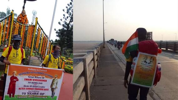 কলকাতা থেকে হেঁটে কটক পৌঁছে যাওয়া এই দুই ব্যক্তির নাম বুদ্ধদেব দাস ও মৃণাল দাস। তাঁরা স্বামীজির জন্মদিবস ১২ জানুয়ারি কলকাতা থেকে হাঁটা শুরু করেন। গতকাল সন্ধেবেলা তাঁরা কটকে পৌঁছন। এই কয়েকদিনে তাঁরা রাত কাটিয়েছেন হয় পথে তাঁবু খাটিয়ে, না হলে কোনও আশ্রমে। রোজ গড়ে ৫০ থেকে ৬০ কিলোমিটার হেঁটেছেন তাঁরা। একদিনে সর্বোচ্চ ৭৫ কিলোমিটার হেঁটেছেন। গতকাল কটকে পৌঁছে তাঁরা রাত কাটান সেখানকার রামকৃষ্ণ মিশনে। আগামীকাল তাঁরা ফিরে আসছেন।