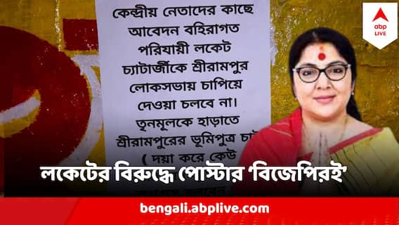 দেবশ্রী চৌধুরীর পর এবার হুগলির (Hooghly) বিজেপি সাংসদের বিরুদ্ধে পোস্টার পড়ল শ্রীরামপুর লোকসভা কেন্দ্রে। পোস্টারে লেখা হয়েছে, "কেন্দ্রীয় নেতাদের কাছে আবেদন বহিরাগত পরিযায়ী লকেট চট্টোপাধ্য়ায়কে শ্রীরামপুর লোকসভায় চাপিয়ে দেওয়া চলবে না। তৃণমূলকে হারাতে শ্রীরামপুরের ভূমিপুত্র চাই।" এই কথার নিচে বন্ধনীতে লেখা হয়েছে, "দয়া করে কেউ আমাদের তৃণমূল বা কংগ্রেস বলবেন না, আমরা বিজেপি কর্মী।" শ্রীরামপুর লোকসভা কেন্দ্রের শেওড়াফুলি, বৈদ্যবাটি, শ্রীরামপুর সহ একাধিক জায়গায় দেখা গেছে এমন পোস্টার। গত পয়লা ফেব্রুয়ারি কার্যত একই ধরনের দাবি উঠেছিল রায়গঞ্জের বিজেপি সাংসদ দেবশ্রী চৌধুরীর বিরুদ্ধে। "পরিযায়ী এমপি প্রার্থী আর নয়। ভূমিপুত্রদের প্রার্থী করতে হবে।" এই দাবি তুলে নাগরিক মঞ্চের ব্য়ানারে রায়গঞ্জের ঘড়ি মোড় থেকে বিদ্রোহী মোড় পর্যন্ত দণ্ডিযাত্রাও হয়েছিল। ওই ঘটনার এক সপ্তাহের মধ্যে এবার পোস্টার পড়ল হুগলির বিজেপি সাংসদ লকেট চট্টোপাধ্যায়ের বিরুদ্ধে। প্রার্থী নিয়ে মতামত জানানোর জন্য দলে অনেক ব্যবস্থা আছে।