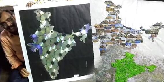 কিন্তু কী আছে সেই ম্যাপে ? কী দিয়েই বা তৈরি করেছেন ম্যাপগুলো ,যার জন্য প্রত্যেহ এত মানুষের আনাগোনা শুরু হয়েছে ? মূলত ফেলে দেওয়া বিভিন্ন জিনিসপত্র, যেমন বিভিন্ন রঙের পলিথিন, কাগজ, টিন,বাদামের খোলা, কাগজের ফুল তুলো,বল বিয়ারিং, পুরানো ক্যাসেটের ফিতে ইত্যাদি কুড়িয়ে ই বেশীরভাগ ভারতের ম্যাপ তৈরি করেছেন চন্দন বাবু। সেটা ছাড়াও, গ্ৰামাঞ্চলের বিভিন্ন গাছের বীজ, গাছের ছাল যেমন, আমলি বীজ, শিয়াল কাঁটা বীজ, কাঞ্চন ফুলের বীজ, বৈজন্তী বীজ, আখরোটের খোলা, পেঁপে গাছের ছাল দিয়ে ও তৈরি করেছেন বেশ কয়েকটা ভারতের ম্যাপ।। পরানো নোটের প্রতিলিপি , ভারতীয় মুদ্রা দিয়ে ও তৈরী হয়েছে ভারতবর্ষ। এগুলো ছাড়াও ভারতের একটি বড় সাইজের ম্যাপ তৈরি করেছেন চন্দন বাবু যেটাতে, ভারতের বিভিন্ন ধর্ম গুরু, বিখ্যাত ডাক্তার, খেলোয়াড়, অভিনেতা,স্বাধীনতা সংগ্ৰামী , রাজনৈতিক ব্যক্তিত্ব সহ একাধিক ভারত বিখ্যাত মানুষের ছবি স্থান পেয়েছে সেই ম্যাপে । ঘরের বাইরে পাঁচিলের উপর জমা শ্যাওলা কেটে একটি অসাধারণ মানচিত্র করেছেন তিনি । সব মিলিয়ে ৭৫ তম স্বাধীনতা দিবসে ৭৫ টি ভারতের ম্যাপ !