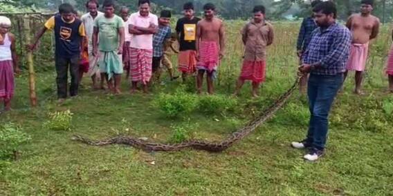 রাজা চট্টোপাধ্যায়, জলপাইগুড়ি: জালে আটকে বৃহৎ আকারের পাইথন উদ্ধার ধূপগুড়িতে (Dhupguri)। খাবারের লোভে জঙ্গল থেকে লোকালয়ে ঢুকে জালে আটকা পড়ে প্রায় ১৩ ফুট লম্বা অজগর সাপ। চাঞ্চল্য ছড়িয়ে পড়ে ধূপগুড়ির পূর্ব মাগুর্মারি এলাকায়।