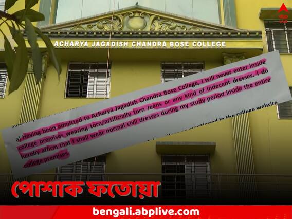 পড়ুয়াদের জন্য পোশাক সংক্রান্ত নির্দেশিকা বা সেই নিয়ে ফতোয়া যদিও নতুন নয়। কিন্তু কলেজে ভর্তির প্রাথমিক শর্ত হিসেবে পোশাক নিয়ে মুচলেকা দেওয়ার এই ঘটনা নজিরবিহীন। মিন্টোপার্কের আচার্য জগদীশচন্দ্র বোস কলেজে এমনই বেনজির ঘটনা ঘটতে দেখা গেল। সেখানে পড়ুয়া এবং তাঁদের অভিভাবকদের কাছ থেকে মুচলেকা আদায় করা হচ্ছে, যাতে লিখিত দিতে হচ্ছে যে, 'ছেঁড়া জিন্স বা অশালীন পোশাক পরব না'। ভর্তির আগে পড়ুয়া এবং অভিভাবকদের সই করে এই মুচলেকা জমা দিতে হচ্ছে।