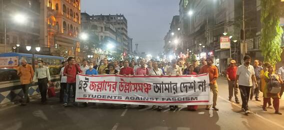 কৃষ্ণেন্দু অধিকারী ও অরিত্রিক ভট্টাচার্য, কলকাতা : রামপুরহাটকাণ্ডের (Rampurhat Violence) প্রতিবাদ কলকাতায় (Kolkata)। মৌলালি যুব কেন্দ্র থেকে থেকে মিছিলে পা মেলালেন একাধিক বিশিষ্টরা (Eminent Persons)। যা যাবে জোড়াসাঁকো ঠাকুরবাড়ি পর্যন্ত। 'এই জল্লাদের উল্লাসমঞ্চ আমার দেশ নয়' নবারুণ ভট্টাচার্যর লেখা প্রখ্যাত প্রতিবাদের লাইন লেখা বিশাল ফ্লেক্স সামনে রেখে মিছিলে মিছিলে পা মেলান পবিত্র সরকার, অম্বিকেশ মহাপাত্র, অনীক দত্ত, কমলেশ্বর মুখোপাধ্যায়রা। রাজনৈতিক পতাকা ছাড়াই পথে নেমেছেন দীপ্তিতা ধর, সৃজন ভট্টাচার্যরাও।