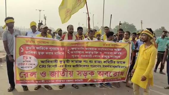 বাতিল ট্রেন...এদিকে এই আন্দোলনের জেরে আজও বাতিল দক্ষিণ-পূর্ব রেলের ৯৫টি দূরপাল্লার ট্রেন। এই নিয়ে গত ৫ দিনে ৪৯৬টি দূরপাল্লার ট্রেন বাতিল হয়েছে। তালিকায় রয়েছে হাওড়া-বারবিল জনশতাব্দী এক্সপ্রেস, হাওড়া-তিতলাগড় ইস্পাত এক্সপ্রেস, হাওড়া-বোকারো স্টিল সিটি এক্সপ্রেস, হাওড়া-পুণে আজাদ হিন্দ এক্সপ্রেস। তা ছাড়াও বাতিল হাওড়া-মুম্বই মেল, পুরুলিয়া-হাওড়া এক্সপ্রেস, হাওড়া-টাটানগর স্টিল এক্সপ্রেস, হাওড়া-রাঁচি এক্সপ্রেস। সব মিলিয়ে তীব্র ভোগান্তি যাত্রীদের। তার উপর তীব্র দাবদাহে পুড়ছে দক্ষিণবঙ্গ। পুরুলিয়া ও পশ্চিম মেদিনীপুরে কুড়মি আন্দোলনের জেরে লাগোয়া বাঁকুড়া জেলায় আসা-যাওয়াতেও সমস্যায় পড়েছেন অনেকেই। কেউ কেউ স্টেশনে এসে জানতে পারছেন রেল অবরোধের কথা। ফলে সড়ক পথে বা ঘুরপথে বেশি ভাড়া গুনে গন্তব্যে পৌঁছতে হচ্ছে। দূর-দূরান্ত থেকে অনেকেই বাঁকুড়া সম্মিলনী মেডিক্যাল কলেজ হাসপাতালে চিকিৎসার জন্য আসেন। রেল অবরোধের জেরে সমস্যায় পড়েছেন রোগী ও তাঁদের পরিজনেরা। কেউ কেউ কাজের সূত্রে অন্যত্র যান। রেল অবরোধের জেরে বাঁকুড়া থেকে বিষ্ণুপুর, খড়গপুর, মেদিনীপুর, পুরুলিয়া যেতে তাঁদের চূড়ান্ত সমস্যায় পড়ে হচ্ছে। কুড়মিদের লাগাতার আন্দোলনের জেরে চরম ভোগান্তি নিয়ে টুইটে রাজ্যকে নিশানা করেছেন শুভেন্দু অধিকারী। বিরোধী দলনেতা লিখেছেন, রাজ্যের বিস্তীর্ণ এলাকা প্রশাসনের নিয়ন্ত্রণের বাইরে চলে গিয়েছে। রেল ও সড়ক অবরোধ চলছে। মনে হচ্ছে রাজ্য সরকারের ওপর আর আস্থা নেই। কেন আলোচনার মাধ্যমে সমাধানের পথ খোঁজা হচ্ছে না? এটা মুখ্যমন্ত্রীর প্ররোচনার ফল। একই সুরে রাজ্যকে আক্রমণ করেন বিজেপির সর্বভারতীয় সহ সভাপতি দিলীপ ঘোষও। পাল্টা কেন্দ্রের ঘাড়ে দায় চাপিয়েছেন তৃণমূলের রাজ্য সাধারণ সম্পাদক কুণাল ঘোষ।