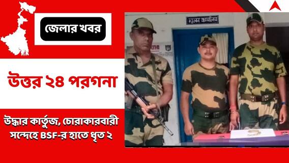 কী ভাবে উদ্ধার?গত কাল বিকেল ৪টে ৪০ মিনিটে ঘটনাটি ঘটে। সীমা চৌকি জয়ন্তীপুরের কর্তব্যরত জওয়ানরা দেখতে পান, কাটাতারের দু'পাশে তাজা কার্তুজ ছড়িয়ে ছিটিয়ে পড়ে রয়েছে। তার পরই এলাকায় ব্যাপক তল্লাশি চালান তাঁরা। সেই সময়, ৪১টি কার্তুজের হদিশ মেলে। তবে আশপাশের এলাকায় তল্লাশি চালালে সেখানে কাউকে দেখা যায়নি বলেই খবর বিএসএফ সূত্রে। এর পর জয়ন্তীপুর সীমান্ত চৌকি এলাকায় লাগানো গোপন ক্যামেরার ফুটেজ পরীক্ষা করা হয়। তাতেই লাগোয়া ৩৬ ঘড়িয়া গ্রাম থেকে কাটাতারের সামনে দু'জনের গতিবিধি ধরা পড়ে। বিএসএফ গোয়েন্দা সূত্রে খবর, দুজনের একজনের নাম গিয়াসউদ্দিন মণ্ডল। বয়স ৩৯ বছর। দ্বিতীয় জন, মোহাম্মদ নাজির হোসেন মুল্লা। তার বয়স ৩৭ বছর। দুজনেই ৩৬ ঘরিয়া গ্রামের বাসিন্দা বলে জানা যায়।ক্যামেরায় তাদের দেখা মিলতেই বিএসএফের একটি তল্লাশি দল গিয়াসউদ্দিন মন্ডলকে তার বাড়ির কাছে থেকে আটক করে। শুরু হয় জিজ্ঞাসাবাদ। বিএসএফের দাবি, জিজ্ঞাসাবাদে সে স্বীকার করেছে যে, মোহাম্মদ নাজির হোসেন মোল্লার সঙ্গে এই ঘটনায় সে জড়িত ছিল। আরও জানায়, নাজিরের নির্দেশেই সে কৃষকের ছদ্মবেশে ওই এলাকায় বিএসএফ জওয়ানদের গতিবিধি সর্বক্ষণ নজরদারি করছিল। জওয়ানদের বিভ্রান্ত করার জন্য, একসময়ে সে কাটাতারের কাছে গিয়ে ঘাস কাটার ভানও করেছিল বলে দাবি। ঠিক সেই সময়ই, নাজির একটি প্লাস্টিকের ব্যাগে তাজা কার্তুজ নিয়ে কাটাতার পেরোনোর চেষ্টা করে দাবি গিয়াসউদ্দিনের। কিন্তু থলিটি কাঁটাতারের মধ্যে আটকে গিয়ে ফেটে যায়। যার ফলে সমস্ত তাজা কার্তুজ দু'পাশে ছড়িয়ে পড়ে। বিএসএফের ভয় পেয়ে এর পরই দুজনে গ্রামের দিকে পালিয়ে যায়। গিয়াসউদ্দিন আরও জানিয়েছে যে তারা কার্তুজগুলি সংগ্রহের চেষ্টা করেছিল। কিন্তু বিএসএফ জওয়ানদের দেখে তারা পালিয়ে যাওয়াই শ্রেয় মনে করে। এর পর মোহাম্মদ নাজির হোসেন মুল্লাকেও তার বাড়ির কাছ থেকে আটক করে বিএসএফের অনুসন্ধানকারী দল। জিজ্ঞাসাবাদে সেও ঘটনার কথা স্বীকার করেছে, দাবি সীমান্তরক্ষী বাহিনীর। ধৃত দুজনের বিরুদ্ধে আইনানুগ ব্যবস্থা গ্রহণের জন্য পেট্রাপোল থানায় হস্তান্তর করা হয়েছে। বাজেয়াপ্ত কার্তুজগুলিও সেখানেই পাঠিয়েছে বিএসএফ। বাহিনীর সাউথ বেঙ্গল ফ্রন্টিয়ারের জনসংযোগ কর্মকর্তা বলেন, 'ভারত-বাংলাদেশ সীমান্তে চোরাচালান বন্ধ করতে বিএসএফ কঠোর পদক্ষেপ নিচ্ছে। সেই কারণে এ ধরনের অপরাধের সঙ্গে জড়িতরা নানা সমস্যায় পড়ছে।'