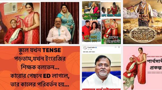 আরেকটিতে দেখা যাচ্ছে টাকার পাহাড়ের পাশে পার্থ ও তাঁর ঘনিষ্ঠ অর্পিতার ছবি দিয়ে লেখা, 'দিদির অনুপ্রেরণায় পার্থ-অর্পিতার ‘লক্ষীর ভান্ডার’।'