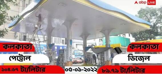 কলকাতা: রাষ্ট্রায়ত্ত তেল সংস্থাগুলি বুধবারও পেট্রোল ও ডিজেলের দামে কোনও পরিবর্তন ঘটালো না। কলকাতা সহ দেশে জ্বালানির মূল্য অপরিবর্তিত রয়েছে। বিগত প্রায় ৬০ দিনেরও বেশি পেট্রোল ও ডিজেলের দাম স্থির রয়েছে। প্রতিদিনের মতো এদিনও সকাল ৬ টায় পেট্রোল ও ডিজেলের দাম প্রকাশ করেছে রাষ্ট্রায়ত্ত তেল সংস্থাগুলি। এদিনের দরও স্থির রয়েছে। কলকাতাতেও পেট্রোল ও ডিজেলের দামে কোনও পরিবর্তন হয়নি। কলকাতায় আজও পেট্রোলের দাম প্রতি লিটারে ১০৪.৬৭ টাকা ও ডিজেলের দাম প্রতি লিটারে ৮৯.৭৯ টাকা (Petrol-Diesel Price Today 05 January 2022 In Kolkata)।