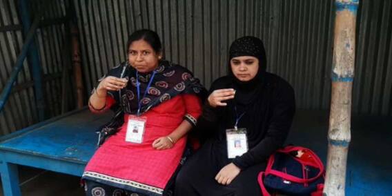 রানা দাস, পূর্ব বর্ধমান: কাটোয়া ১ নম্বর ওয়ার্ডের তৃণমূল প্রার্থী মাসুদা খাতুন ও সিপিএম প্রার্থী মঞ্জিদা খাতুন আড্ডার মেজাজে। পুরভোটে (WB Municipal Elections) অশান্তির ছবির মধ্যেই উল্টো চিত্র বর্ধমানের কাটোয়ায় (katwa)। কাটোয়া ১ নম্বর ওয়ার্ডের তৃণমূল প্রার্থী মাসুদা খাতুন ও সিপিএম প্রার্থী মঞ্জিদা খাতুনকে দেখা গেল আড্ডার মেজাজে। চায়ের সঙ্গে চলল গল্প।