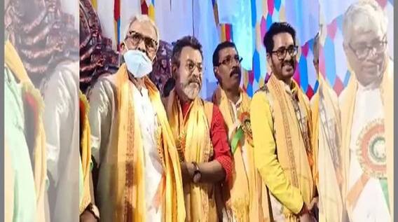 কলকাতা : সাংসদ পদ খারিজ নিয়ে বিতর্কের মাঝেই এবার পুজোর উদ্বোধনে বিজেপি বিধায়কদের (BJP MLAs) সঙ্গে একমঞ্চে দেখা গেল শিশির অধিকারীকে (Sisir Adhikari)। কাঁথির নান্দনিক ক্লাবের সভাপতি শুভেন্দু অধিকারী ও সম্পাদক সৌমেন্দু অধিকারী। চতুর্থীর রাতে ওই পুজোর উদ্বোধনে কাঁথির সাংসদ শিশির অধিকারীর পাশাপাশি উপস্থিত ছিলেন খড়গপুরের বিজেপি বিধায়ক হিরণ চট্টোপাধ্যায়, বিজেপি নেতা রুদ্রনীল ঘোষ ও কাঁথি দক্ষিণের বিজেপি বিধায়ক অরূপ দাস। বিষয়টি সাংসদ পদ খারিজের শুনানিতে উল্লেখ করা হবে বলে জানিয়েছে কাঁথি সাংগঠনিক জেলা নেতৃত্ব। এনিয়ে তুঙ্গে উঠেছে রাজনৈতিক তরজা।