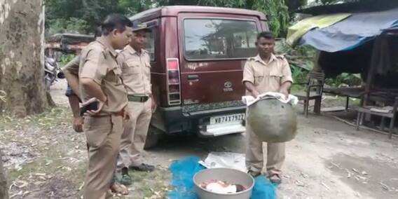 গোপন সূত্রে খবর এসেছিল, নাথুয়াহাট পুরাতন বাজার এলাকায় কচ্ছপের মাংস বিক্রি হচ্ছে। সেই মতো সেখানে অভিযান চালান বন দফতরের নাথুয়া রেঞ্জের কর্মীরা। প্রাথমিক ভাবে জানা যাচ্ছে, তাঁদের আসতে দেখেই মাংস ফেলে পালায় বিক্রেতা দুই যুবক। বন দফতর সূত্রে খবর, দুই অভিযুক্তের বিরুদ্ধে, বন্যপ্রাণ আইন অনুযায়ী ব্যবস্থা নেওয়া হবে। এদিনের ঘটনা নিয়ে অনারারি ওয়াইল্ড লাইফ ওয়ার্ডেন সীমা চৌধুরীর বক্তব্য, 'আমাদের অনুমান, কচ্ছপগুলি ডায়ানা নদী ও মূর্তির জঙ্গল লাগোয়া নদী থেকে ধরা হয়েছে। চড়া দামে মাংস বিক্রির চেষ্টা চলছিল। উদ্ধার করা মাংস নাথুয়া রেঞ্জে রাখা হয়েছে। সেগুলি পরীক্ষা করে দেখা হচ্ছে। পুরো প্রক্রিয়াটির সঙ্গে জড়িতদের খোঁজ চলছে।'