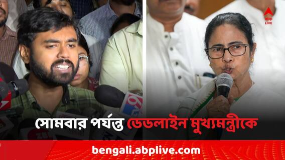 তিনি আরও বলেন, আমরা আরও একটা বলতে চাই। সোমবার স্বাস্থ্যক্ষেত্রে বিভিন্ন জায়গায়, আমরা অবস্থান বিক্ষোভের কর্মসূচি নিচ্ছি। তা নিয়ে বিস্তারিত আমরা পরে জানাবো। কিন্তু মুখ্য কর্মসূচি হিসেবে, আমরা যে সিদ্ধান্ত নিতে বাধ্য হয়েছি, সোমবার অবধি একটি সময়সীমা দিচ্ছি। যে এর মধ্যে মাননীয়া মুখ্যমন্ত্রীকে আমাদের সবকটি দাবি, মানার জন্য আলোচনায় বসতে হবে। এবং সবকটা দাবি মেনে নিতে হবে।' এরপরেই তিনি বলেন, না মানা হলে মঙ্গলবার সর্বাঙ্গীন স্বাস্থ্য ধর্মঘটের কথা।