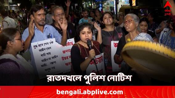 কবে কোন কর্মসূচির জন্য নোটিস?৪ সেপ্টেম্বর বেহালায় রাত দখল কর্মসূচি ছিল, সেই ঘটনায় ৫ আয়োজককে নোটিস পাঠানো হয়েছে।১৯ সেপ্টেম্বরের কর্মসূচি নিয়ে ৫ আয়োজককে নোটিস, ৭ দিনে ঠাকুরপুকুর থানায় তলব