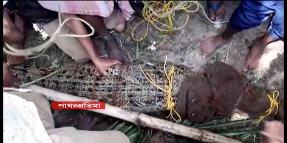 জয়দীপ হালদার, পাথরপ্রতিমা (দক্ষিণ ২৪ পরগণা): পাথরপ্রতিমায় (Patharpratima) লোকালয় থেকে উদ্ধার হল বিশালাকার কুমির (Crocodile)। আচমকা একটি পুকুরে প্রাণীটিকে দেখতে পেয়ে চিৎকারে ফেটে পড়েন বাসিন্দারা (local residents)। ছড়ায় চাঞ্চল্য (chaos)।
