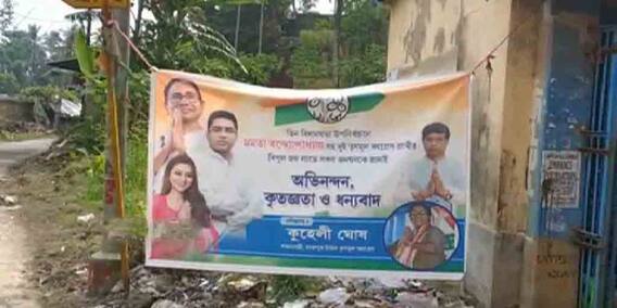 মাস দুয়েক আগে রাজপুরের তৃণমূল সভাপতি করা হয় কুহেলি ঘোষকে। উপনির্বাচনে তিন কেন্দ্রে জয়ের জন্য শুভেচ্ছা জানিয়ে এই তৃণমূল নেত্রীর নামে পোস্টার পড়েছে।