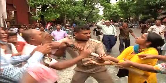 এ দিন সূচনাপর্বেই বিক্ষোভকারীদের আটকানোর চেষ্টা করে পুলিশ। আলাপ-আলোচনার মাধ্যমে প্রথমে পরিস্থিতি নিয়ন্ত্রণের চেষ্টা করে পুলিশ। কিন্তু ব্যারিকেড ভেঙে এগোতে শুরু করে ভিড়। তাতেই কড়া হাতে পরিস্থিতি নিয়ন্ত্রণে উদ্যোগী হয় পুলিশ। প্রথমে লাঠিচার্জ না করলেও, এক একজন পুলিশকর্মীকে ভিড় ছেঁকে ধরতে শুরু করলে লাঠিচার্জ করে পুলিশ। ঘটনাস্থল থেকে যে ভিডিও সামনে এসেছে, তাতে দেখা গিয়েছে, ভিড়কে দূরে হটাতে ডায়ে-বাঁয়ে শূন্যে লাঠি চালাচ্ছেন এক পুলিশকর্মী। তিনি একটু অন্য মনস্ক হতেই একদল বিক্ষোভকারী তাঁর উপর চড়াও হয়।