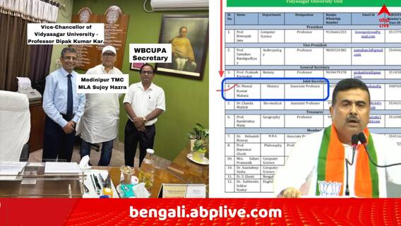 এক্স হ্যান্ডলে একটি ছবিও পোস্ট করেছেন শুভেন্দু অধিকারী।যেখানে একই ফ্রেমে দেখা যাচ্ছে উপাচার্য দীপককুমার কর, বিধায়ক ও তৃণমূলের জেলা সভাপতি সুজয় হাজরা এবং বিদ্যাসাগর বিশ্বববিদ্যালয় ইউনিটের WBCUPA-র সভাপতি বিশ্বপতি জানাকে। ছবির ওপরে বিরোধী দলনেতা লিখেছেন, তৃণমূলের ষড়য়ন্ত্র!' ফোনে যোগাযোগের চেষ্টা করা হলেও উপাচার্য দীপককুমার কর এবং WBCUPA-এর যুগ্ম সম্পাদক নির্মলকুমার মাহাতোর এবিষয়ে এদিন কোনও প্রতিক্রিয়া পাওয়া যায়নি। বিশ্বববিদ্যালয় ইউনিটের WBCUPA-র সভাপতি এনিয়ে কড়া প্রতিক্রিয়া দিয়েছেন।বিদ্যাসাগর বিশ্ববিদ্যালয় শাখার অধ্যাপক ও ওয়েবকুপার সভাপতি বিশ্বপতি জানা বলেন, আমাদের ভিসি , উনি যথাযথ উপযুক্ত ব্যবস্থা নিয়েছেন। যাযা পদক্ষেপ নেওয়ার, সেটা নেওয়া হয়েছে। এইভাবে ছবি দিয়ে আমাদেরকে Nexus বলা, এটা কিন্তু ওনার একটা হতাশার বহিঃপ্রকাশ। উনি নিজেকে হতাশাগ্রস্থ মনে করেন। ..আমরা এডুকেশনে থাকি..', এই ধরণের ছবি দিয়ে, এমনটা বলা ঠিক নয় বলেই প্রতিক্রিয়া বিশ্বপতি জানার।