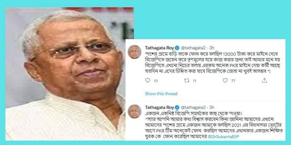 এর আগে গত ২০ তারিখ পুরভোটের আগে দলের অস্বস্তি বাড়িয়ে ফের ট্যুইট করেন বিজেপি নেতা তথাগত রায়। লেখেন, আপাতত বিদায় বঙ্গ বিজেপি! তাহলে কি বিজেপি ছাড়ছেন দলের প্রাক্তন রাজ্য সভাপতি? শুরু হয় রাজনৈতিক তরজা।