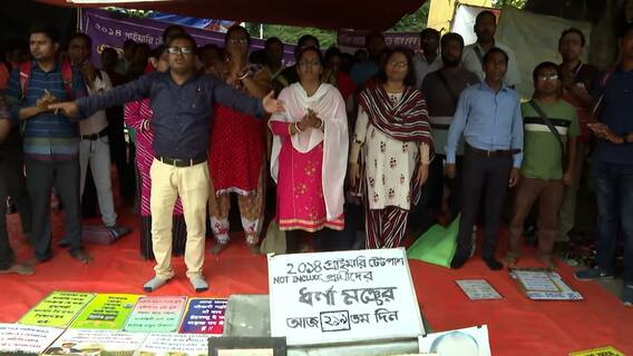 মাথার ওপর কাঠফাটা রোদ্দুর, হাতে স্টিলের থালায় শুধু ভাত। পাতের পাশে সামান্য় নুন। চাকরিতে পুনর্বহালের দাবিতে, ভাতের থালা হাতে অভিষেকের সভামঞ্চের দিকে হাঁটছেন আন্দোলনকারীরা। কিন্তু মাঝপথেই পুলিশের বাধা। আন্দোলনকারীদের আটক করল পুলিশ। এরা সকলেই চুক্তিভিত্তিক কর্মী। তাঁদের দাবি, ন্য়াশনাল স্কিলস কোয়ালিফিকেশন ফ্রেমওয়ার্ক, সংক্ষেপে, NSQF-এর অধীনে, বেসরকারি সংস্থার মাধ্য়মে বিভিন্ন সরকারি স্কুলে শিক্ষক ও অশিক্ষক কর্মী পদে তাঁদের নিয়োগ করা হয়। হাতে NSQF-এর প্ল্য়াকার্ড কিন্তু হঠাৎ করেই, কোনও নোটিস ছাড়া, তাঁদের ছাটাই করা হয় বলে অভিযোগ।
