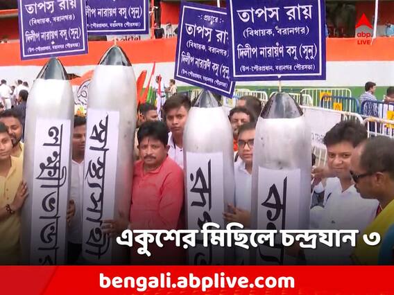 আবির দত্ত, কলকাতা: লক্ষ্মীর ভাণ্ডার, স্বাস্থ্যসাথী, রূপশ্রী, কন্যাশ্রী- তৃণমূল সরকারের নানা প্রকল্পের মডেল আকছাড় দেখতে পাওয়া যায় তৃণমূলের যে কোনও বড় কর্মসূচিতে। ২১ জুলাইয়ের সভায় যোগ দিতে যাওয়ার মিছিলেও তাই নানা প্রকল্পের মডেল দেখতে পাওয়া স্বাভাবিক। কিন্তু এবার তাতে যোগ হয়েছে আরও একটি জিনিস। চন্দ্রযানের লঞ্চ ভেহিকলের মডেল। কদিন আগেই চাঁদে পাড়ি দিয়েছে চন্দ্রযান ৩। এলভিএম-৩- এ চেপে আকাশে উড়েছে সেটি। এবার সেই মডেল ২১ জুলাইয়ের মিছিলে। সেই মডেলের গায়ে লেখা তৃণমূল সরকারের প্রকল্পের নাম।
