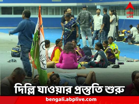তৃণমূলের টার্গেট, দিল্লিতে অন্তত ৩-৪ হাজার মানুষের জমায়েত করা। কেন্দ্রীয় বঞ্চনার প্রতিবাদে ২ ও ৩ অক্টোবর দিল্লিতে ধর্নায় বসবে তৃণমূল। ১০০ দিনের কাজ করেও পারিশ্রমিক থেকে বঞ্চিত বাংলার শ্রমিকরা এই কর্মসূচিতে অংশ নেবেন। শনিবার বিশেষ ট্রেনে দিল্লি রওনা হওয়ার আগে, শুক্রবার সকাল থেকে বেলা যত গড়িয়েছে ততই ভিড় বেড়েছে নেতাজি ইন্ডোরে। এদিন নেতাজি ইন্ডোরেই করা হয়েছিল কর্মীদের খাওয়া ও থাকার এলাহি আয়োজন। মেনুতে ছিল, ভাত-ডাল-আলু পটলের তরকারি-ডিমের ঝোল।
