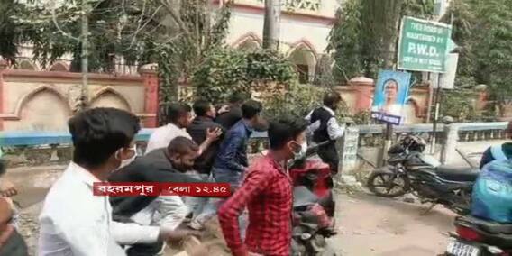 রাজীব চৌধুরী, বহরমপুর: আর অশান্তির অভিযোগ নয়, পুরভোট (WB Municipal Polls 2022) চলাকালীন এ বার বহরমপুরে (Berhampore Municipal Polls)মুখোমুখি সংঘর্ষে জড়াল তৃণমূল (TMC) এবং বিজেপি (BJP)। কৃষ্ণনাথ কলেজের সামনে দু’পক্ষের মধ্যে ঝামেলা শুরু হয়। চলে ধাক্কাধাক্কি, হাতাহাতি এবং মারধর। অশান্তি চলাকালীন তাতে জড়িয়ে পড়েন দুই মহিলাও। পরিস্থিতি সামাল দিতে নেমে কার্যত অসহায় দেখায় সেখানে মোতায়েন এক বন্দুকধারী পুলিশকর্মীকে।