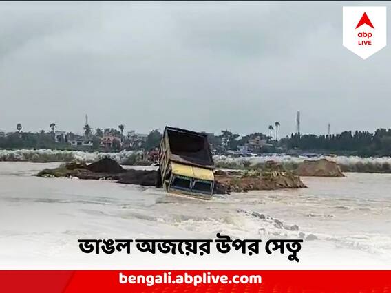 মনোজ বন্দ্যোপাধ্যায়, পশ্চিম বর্ধমান: নিম্নচাপের বৃষ্টিতে অজয়ের জল বেড়ে যাওয়ায়, পশ্চিম বর্ধমানের কাঁকসার শিবপুরে ভাঙল মাটির তৈরি অস্থায়ী সেতু। মাঝ নদীতে আটকে যায় পাথর বোঝাই ডাম্পার। কোনওমতে প্রাণে বাঁচলেন চালক ও খালাসি। শনিবার সকালে জলের তোড়ে বীরভূমের ( Birbhum ) ইলামবাজারের জয়দেব ও পশ্চিম বর্ধমানের ( West Burdwan ) কাঁকসার মধ্যে সংযোগকারী সেতুটি ভেঙে যাওয়ায় সমস্যায় পড়েন দু’ পাড়ের বাসিন্দারা।