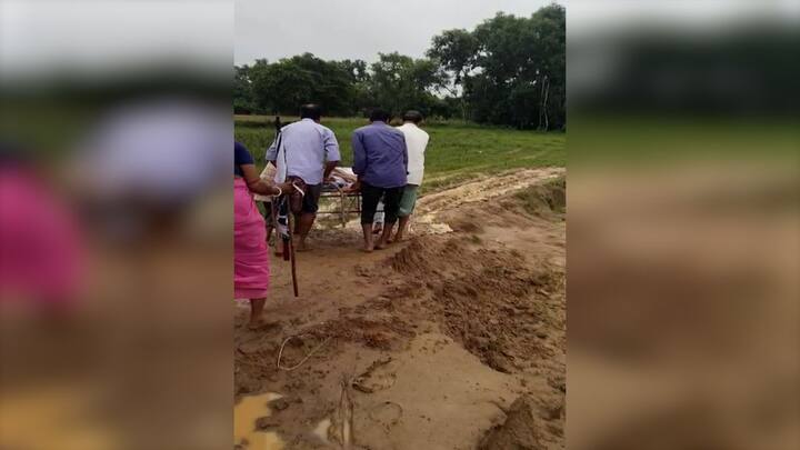 সোমনাথ দাস, চন্দ্রকোণা: রাস্তা খারাপ হওয়ার জেরে ফের ফল ভুগতে হল রোগীকে। হাসপাতাল থেকে দেড় কিলোমিটার রাস্তা খাটিয়ায় চাপিয়ে নিয়ে যেতে হল ষাটোর্ধ্ব মহিলাকে। এমনই বেহাল দশা পশ্চিম মেদিনীপুর জেলার চন্দ্রকোনা দু নম্বর ব্লকের বসনছোড়া গ্রাম পঞ্চায়েত যদুপুর গ্রামের।