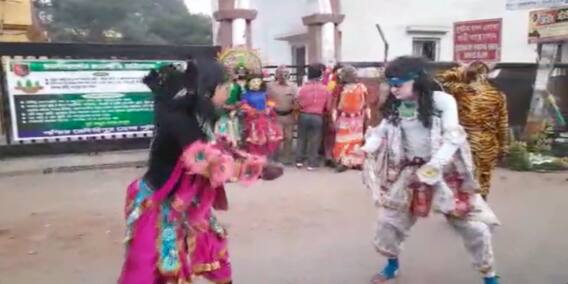 অলোক সাঁতরা, মেদিনীপুর: শব্দবাজির (Firecracker) বিরুদ্ধে গত দু’সপ্তাহ ধরেই পশ্চিম মেদিনীপুর (West Midnapore) জেলার বিভিন্ন ব্লকের অভিযান করছে পুলিশ। প্রচুর পরিমাণে শব্দবাজি বাজেয়াপ্ত করা ছাড়াও গ্রেফতারের ঘটনাও ঘটেছে। এবার বাজি পোড়ানোর বিরুদ্ধে ছৌ নাচের (Chhau Dance) মাধ্যমে মেদিনীপুর শহরের বিভিন্ন মোড়ে মোড়ে প্রচার চালায় পুলিশ।