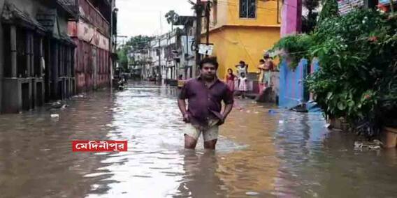 কোথাও সেতুর ওপর দিয়ে বইছে নদীর জল। কোথাও, হাসপাতাল চত্বর জল থৈ থৈ। কোথাও আবার জলের তোড়ে ডুবেছে গাড়ি। টানা বৃষ্টিতে, পশ্চিম মেদিনীপুর জুড়ে শুধুই জলযন্ত্রণার ছবি। এরইমধ্যে, খড়গপুর লোকাল থানার, পশ্চিম পাতরি গ্রামে, দুর্যোগের জেরে ভেঙে পড়ে একটি মাটির বাড়ি। দেওয়াল চাপা পড়ে মৃত্যু হয় এক যুবকের। নিম্নচাপের বৃষ্টিতে জল জমে যায় ঘাটাল সুপার স্পেশালিটি হাসপাতাল চত্বরে। জমা জলে দুর্ভোগে পড়েন রোগীর আত্মীয়রা। ন্যায্য মূল্যের ওষুধের দোকানেও জল ঢুকে যায়।