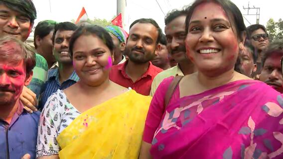 সাগরদিঘি: গণনা শুরু হতেই মুখের হাসি চওড়া হচ্ছিল কংগ্রেস (congress) ও বাম (Left) কর্মী-সমর্থকদের। সাত রাউন্ডের পর সেই হাসিই বদলে গেল উদযাপনের মেজাজে। উড়তে শুরু করল রঙিন আবির। ফলঘোষণার আগেই সাগরদিঘিতে (sagardighi) পুরোদস্তুর জয়ের আনন্দে মাতোয়ারা বাম ও কংগ্রেসের কর্মী-সমর্থকরা। কারণ হিসেব বলছে, সাত রাউন্ড গণনার পরে ৮ হাডার ভোটে এগিয়ে রয়েছেন বাম সমর্থিত কংগ্রস প্রার্থী বায়রন বিশ্বাস।
