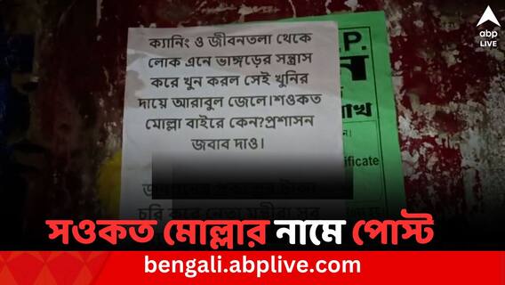স্থানীয় সূত্রে জানা গেছে, দক্ষিণ ২৪ পরগনা জেলার ভাঙড় বিধানসভার পোলেরহাট থানার শ্যামনগর এলাকায় ক্যানিং পূর্বের বিধায়ক সওকত মোল্লা নামে পড়ল একাধিক পোস্টার। আর এই পোস্টারগুলিকে কেন্দ্র করেই তৈরি হয়েছে রাজনৈতিক উত্তেজনা। ওই পোস্টারে লেখা রয়েছে, "ক্যানিং ও জীবনতলা থেকে লোক এনে ভাঙড়ে সন্ত্রাস করে খুন করল সেই খুনের দায়ে আরাবুল জেলে, সওকত মোল্লা বাইরে কেন? প্রশাসন জবাব দাও!"