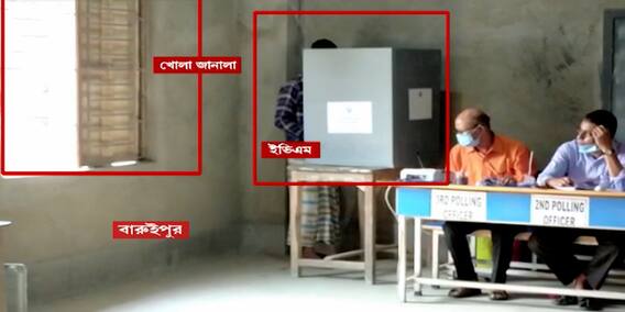 রঞ্জিত হালদার, দক্ষিণ ২৪ পরগনা: বারুইপুর পূর্বের চক্রবর্তী আবাদ এলাকায় ৯০ নম্বর বুথে খোলা জানলার পাশে ইভিএম। ছবি তুলতেই বন্ধ করে দেওয়া হয় জানলা। অন্ধকার ছিল তাই জানলা খোলা ছিল, সাফাই প্রিসাইডিং অফিসারের।