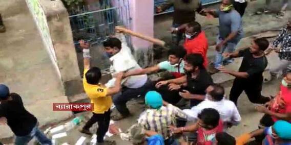 ব্যারাকপুরের নতুনপাড়ায় বিজেপির ক্যাম্প অফিস ভাঙচুর। হামলার অভিযোগ উঠল তৃণমূলের বিরুদ্ধে। খবর পেয়ে এলাকায় যান বিজেপি প্রার্থী চন্দ্রমণি শুক্লা। তাঁর অভিযোগ, ব্যারাকপুর পুরসভার প্রশাসক উত্তম দাসের মদতেই হামলা চলে।অভিযোগ অস্বীকার তৃণমূলের।