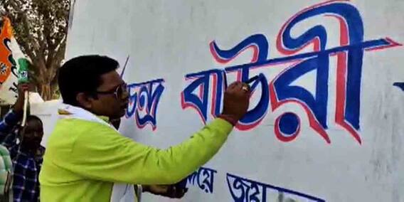 সামনেই বিধানসভা দখলের জোরদার লড়াই। অভিযোগ-পাল্টা অভিযোগ, চাপানউতোরে সরগরম ভোটের ময়দান। চলছে দেওয়াল দখলের লড়াই। সেই দেওয়াল লিখন নিয়েই এবার বিতর্ক তুঙ্গে পুরুলিয়ার রঘুনাথপুর এক নম্বর ব্লক এলাকায়। কারণ, কোনও দল প্রার্থী তালিকা প্রকাশ না করলেও দেওয়ালে ফুটে উঠেছে তৃণমূল প্রার্থীর নাম। রঘুনাথপুরের তৃণমূল বিধায়ক পূর্ণচন্দ্র বাউরি। আসন্ন বিধানসভা ভোটে তাঁকে প্রার্থী হিসেবে তুলে ধরে শুক্রবার সন্ধেয় দেওয়াল লিখন করা হয় জিয়াড়া গ্রামে।