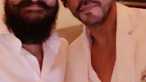 দু’জনের পোশাকই সাদা। তবে আমির ছিলেন তাঁর 'ঠগস অফ হিন্দুস্থান' লুকে। ২৫ বছরে আমির-শাহরুখের প্রথম সেলফি!