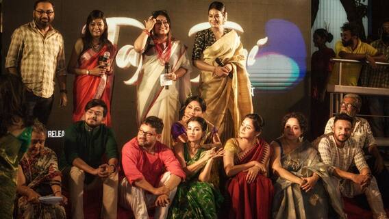 কলকাতা: এই সুর যেন কানে লেখে থাকে। এক মুহূর্তে মুছে দিতে পারে সব মনখারাপ। গতকাল অর্থাৎ শনিবার নন্দন চত্বরে মহা সমারোহে মুক্তি পেয়েছিল উইন্ডোজ প্রযোজিত, শিবপ্রসাদ মুখোপাধ্যায় (Shiboprosad Mukherjee) ও নন্দিতা রায় (Nandita Roy) পরিচালিত 'বেলাশুরু'-র (Belashuru) দ্বিতীয় গান 'ইনি বিনি টাপা টিনি'। খালি পায়ে নন্দন চত্বরেই সেই গানের তালে নেচেছিলেন ঋতুপর্ণা সেনগুপ্ত (Rituparna Sengupta), মনামী ঘোষ (Monami Ghosh), অপরাজিতা আঢ্য (Aparajita Adhya) ইন্দ্রাণী দত্তরা (Indrani Dutta)। আর ২৪ ঘণ্টার মধ্যেই সেই গান ইউটিউবে দেখে ফেললেন ২ লাখেরও বেশি মানুষ। ইউটিউবে ট্রেন্ডিং বীরভূমের মেঠো সুরের গান।