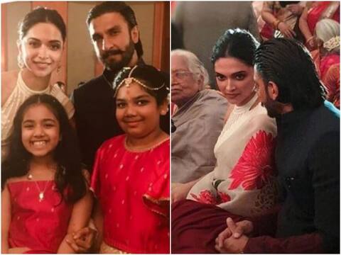 বিয়েবাড়িতে বাচ্ছাদের সঙ্গে আরও ছবি শেয়ার করেন দীপিকা রণবীর। সাদার ওপর লাল ফুল আঁকা শাড়ির সঙ্গে সামঞ্জস্য রেখে হালকা সাজ সেজেছিলেন দীপিকা। কালো পোশাকে রণবীর আর দীপ্পির একেবারে পারফেক্ট ফ্রেম।