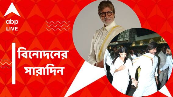 কলকাতা: 'জওয়ান' ছবির মুক্তির আগে আশীর্বাদ নিতে তিরুপতি বালাজি মন্দিরে পুজো দিতে গেলেন শাহরুখ খান, নয়নতারা ও ছিলেন সুহানা খান। দেশের নাম পরিবর্তন নিয়ে বিতর্কের আবহে অমিতাভ বচ্চনের 'এক্স' পোস্টে কীসের ইঙ্গিত? দিনভর বিনোদন দুনিয়ায় নজর কাড়ল কোন কোন খবর, দেখে নিন বিনোদনের সারাদিন (Top Entertainment News)।